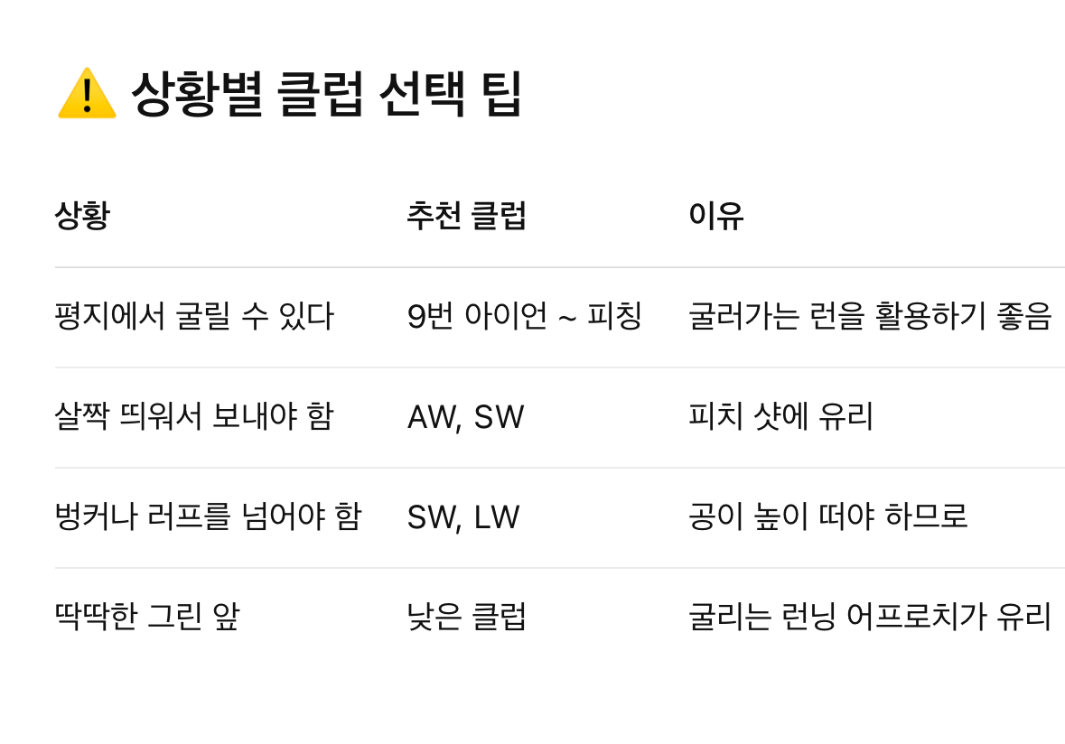 • 상황마다 클럽 선택이 달라져요